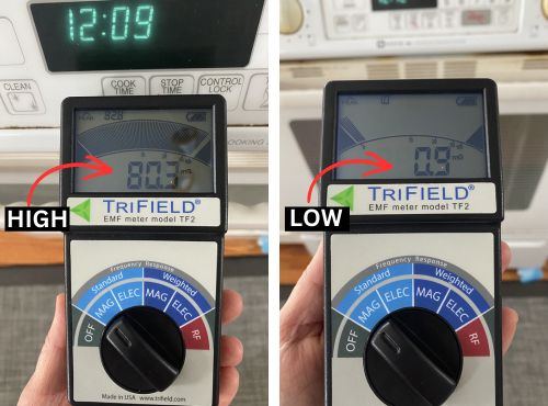 When I walk around my house with the Trifield TF2, most open rooms away from appliances read somewhere between 0.1 and 0.5 mG. Right next to the stove, I’ve measured over 80 mG. A foot or two back, it drops to essentially nothing. Distance matters a lot with magnetic fields.
