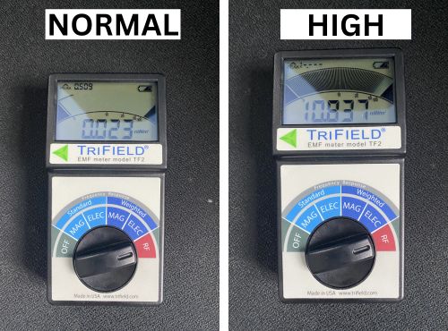 Unit note: The Trifield TF2 reads magnetic fields in milligauss (mG). If you’re using a meter that shows microtesla (µT), multiply by 10 to convert to mG. So 0.1 µT equals 1 mG.
